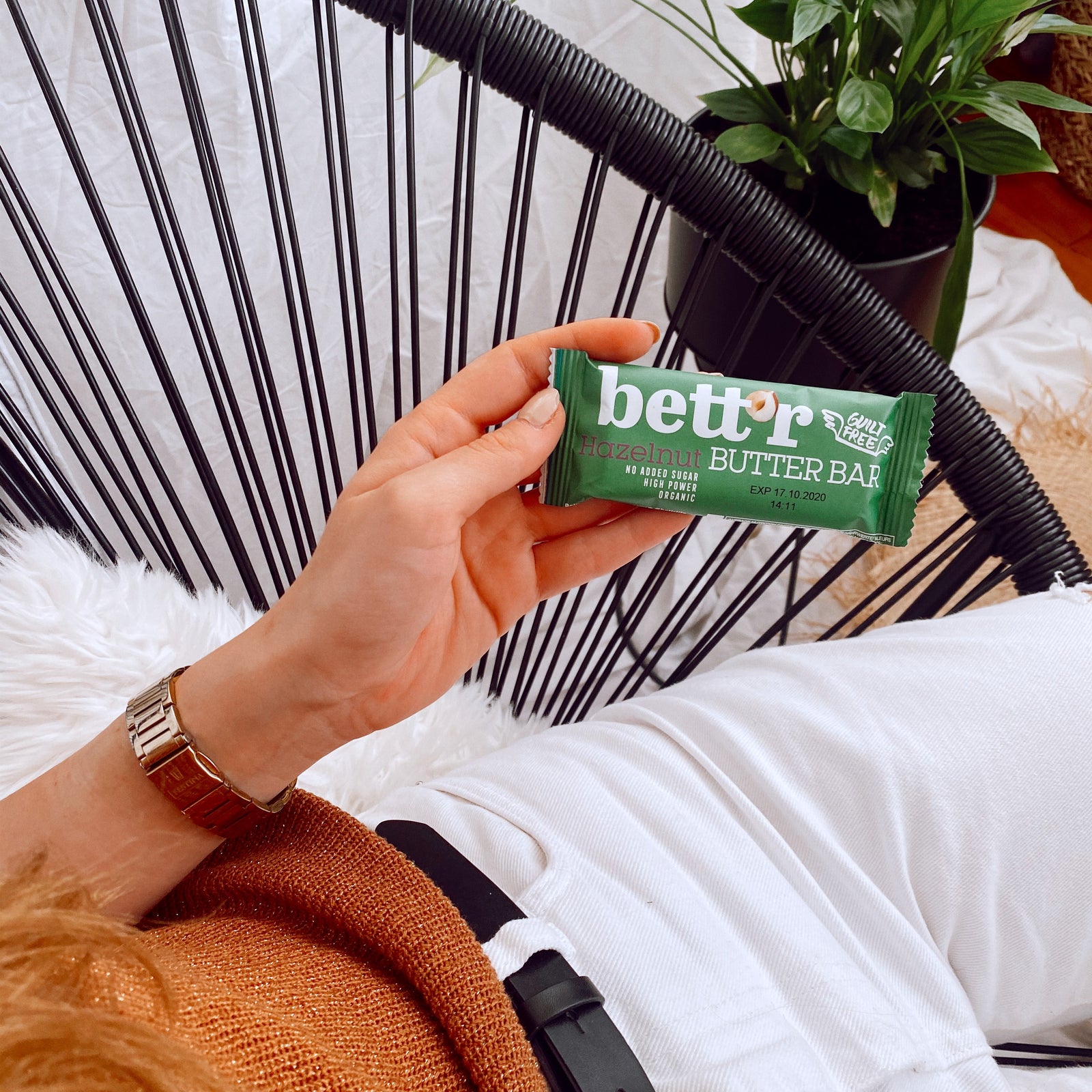 Jeder Bett'r Haselnussbutter-Riegel enthält eine großzügige Menge Protein, um deine Energie zu unterstützen. In einem Riegel findest du 9 Gramm Protein (Angaben pro Riegel).