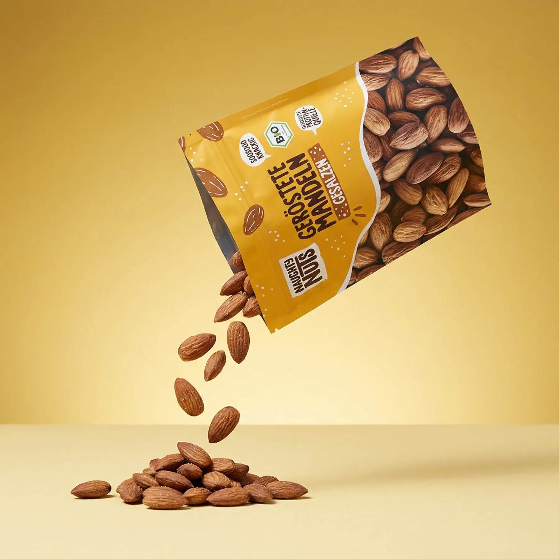 Die Röstung bringt den nussigen Geschmack der Mandeln besonders schön zur Geltung, während das feine Meersalz ihn herzhaft abrundet. Mit 2 % Salz schmecken die Mandeln würzig, ohne den natürlichen Mandelcharakter zu überdecken. So entsteht ein Snack, der unkompliziert ist und trotzdem bewusst gewählt wirkt.