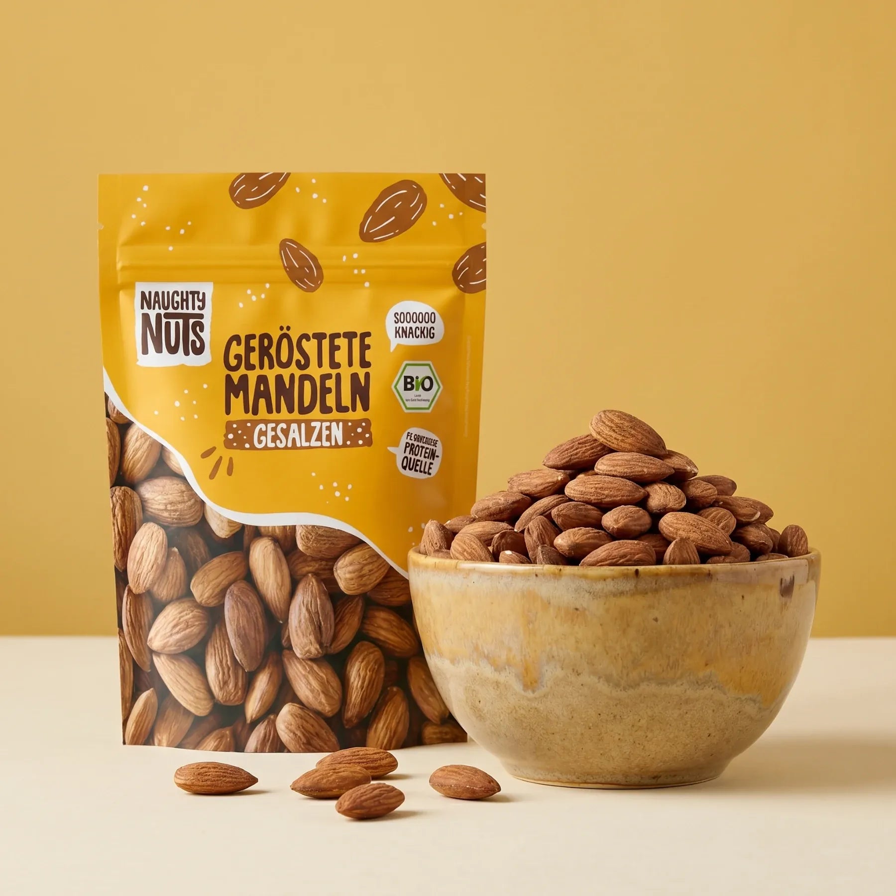 Diese gerösteten Mandeln bringen genau das zusammen, was ein guter Nuss Snack braucht: kräftigen Biss, natürlich nussiges Aroma und eine fein abgestimmte Salznote. Die Mandeln stammen aus biologischem Anbau, werden geröstet und mit 2 % französischem Meersalz verfeinert. Dadurch schmecken sie herzhaft, aber nicht überladen. Perfekt, wenn du etwas Knackiges für den Alltag suchst, das ohne komplizierte Zutatenliste auskommt und direkt aus der Packung überzeugt.